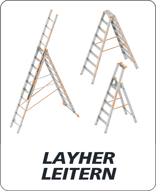Als Pionier und Marktführer in der Steigtechnik, bietet Layher innovative Lösungen, die speziell darauf ausgerichtet sind, die Arbeitssicherheit zu erhöhen und die Handhabung zu vereinfachen. Von Profi Stehleitern Layher über Mehrzweckleitern bis hin zu Anlegeleitern – Layher Produkte sind für ihre Langlebigkeit, ihr geringes Gewicht und ihre benutzerfreundliche Konstruktion bekannt. Ergänzt durch ein breites Spektrum an Zubehör, ermöglichen Layher Produkte eine maßgeschneiderte Anpassung an jede Aufgabe.